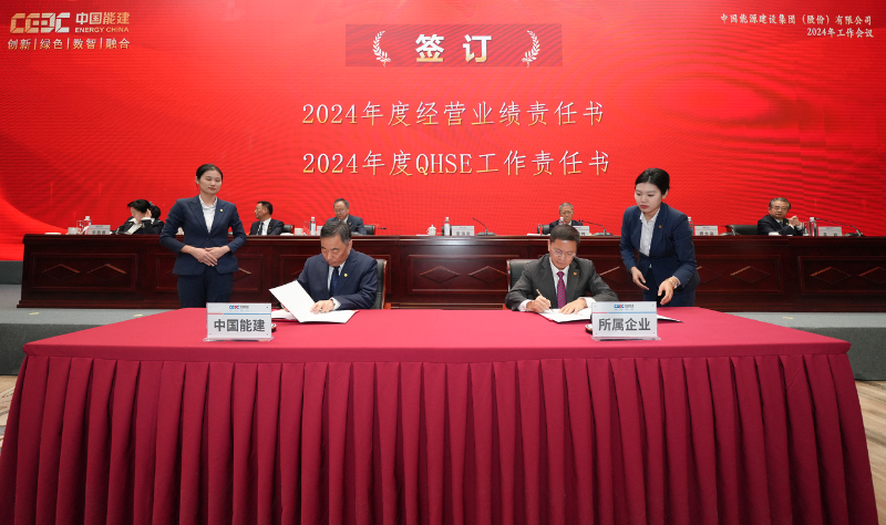 1月18日至19日,中國能建在京召開2024年工作會議暨一屆四次職代會。會上,中國能建黨委書記、董事長宋海良與所屬企業代表簽訂了2024年度經營業績責任書、QHSE工作責任書。