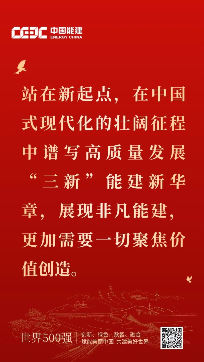 一切聚焦價值創造,是中國能建新一屆領導班子組建以來,積極追求的“三大使命”的核心與靈魂,也是中國能建新簽合同額連續三年實現高速增長,在站穩萬億平臺基礎上再創新高,各項主要生產經營指標均實現快速增長的關鍵法寶,更是實現業務發展布局與路徑全面優化,管理效率和品質顯著提升,合力、向心力、凝聚力進一步增強的深刻啟示。站在新起點,在中國式現代化的壯闊征程中譜寫高質量發展“三新”能建新華章,展現非凡能建,更加需要一切聚焦價值創造。
