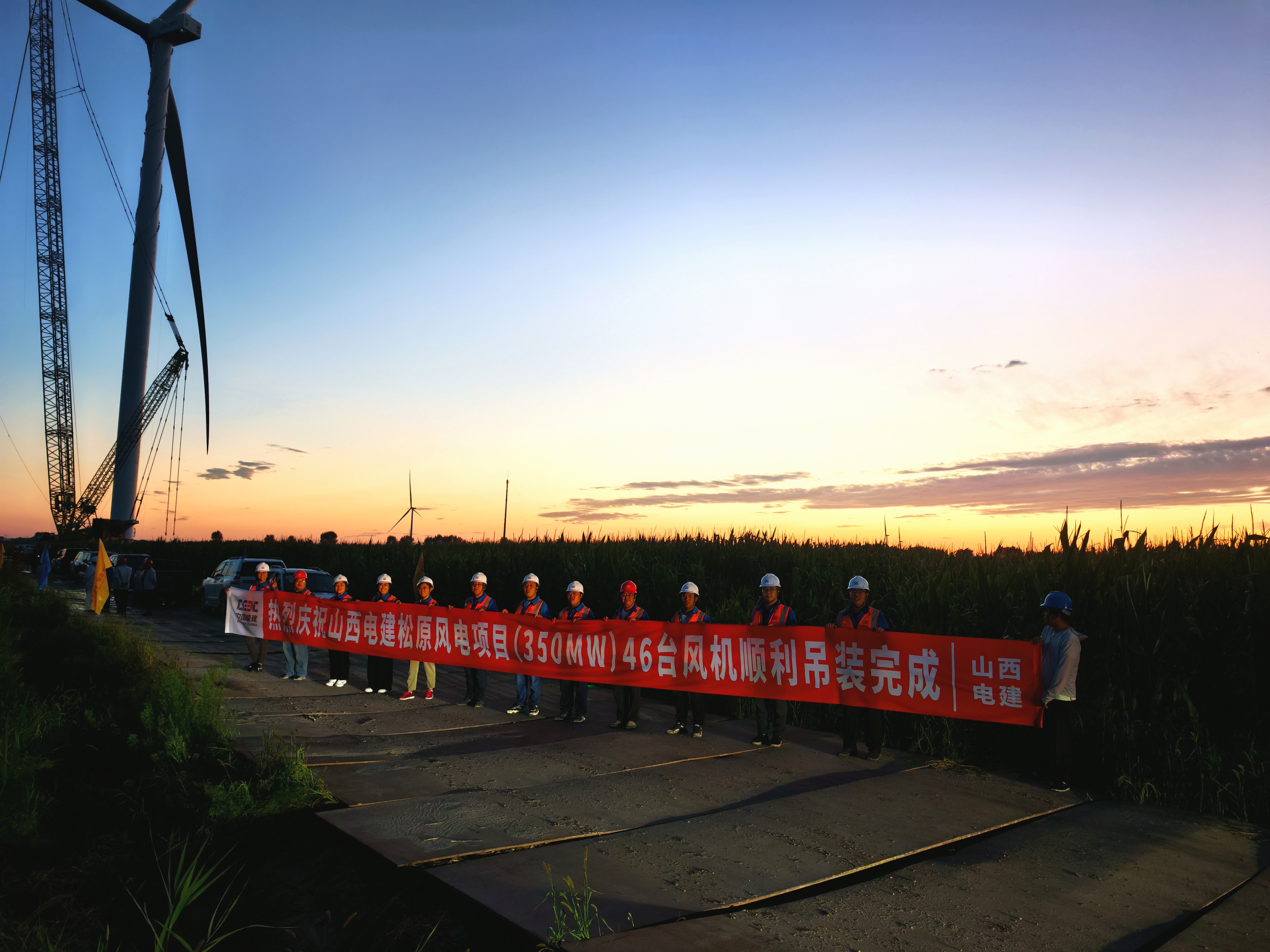 在晚霞的映襯下,“鋼鐵巨人”昂首佇立在黑土地上,此時的松原大地奏響了綠色發展的新篇章。凝聚山西電建建設者們辛勤付出的座座風機,正將清潔電力源源不斷送入產業園區,推動綠色發展,點亮低碳未來。